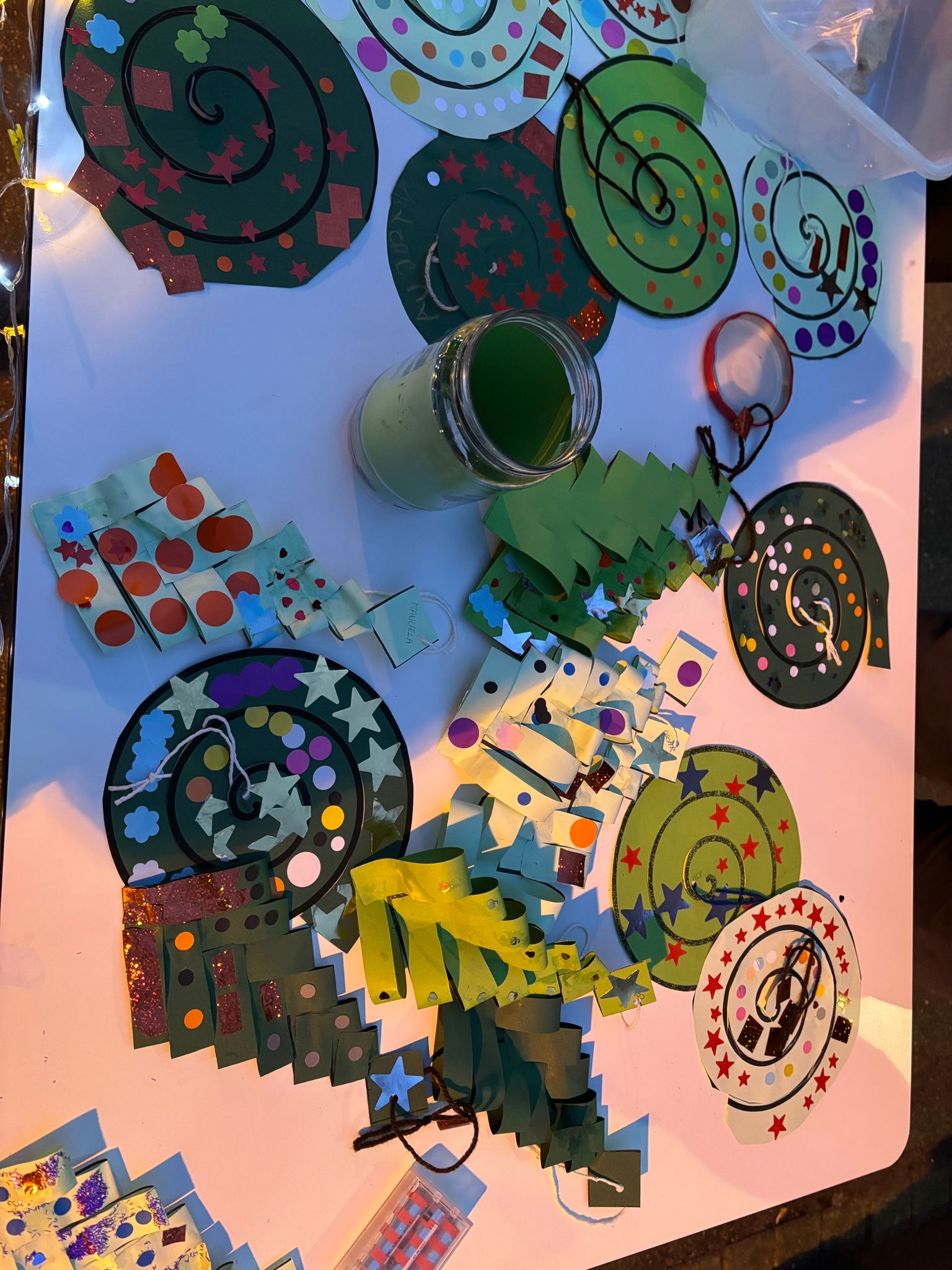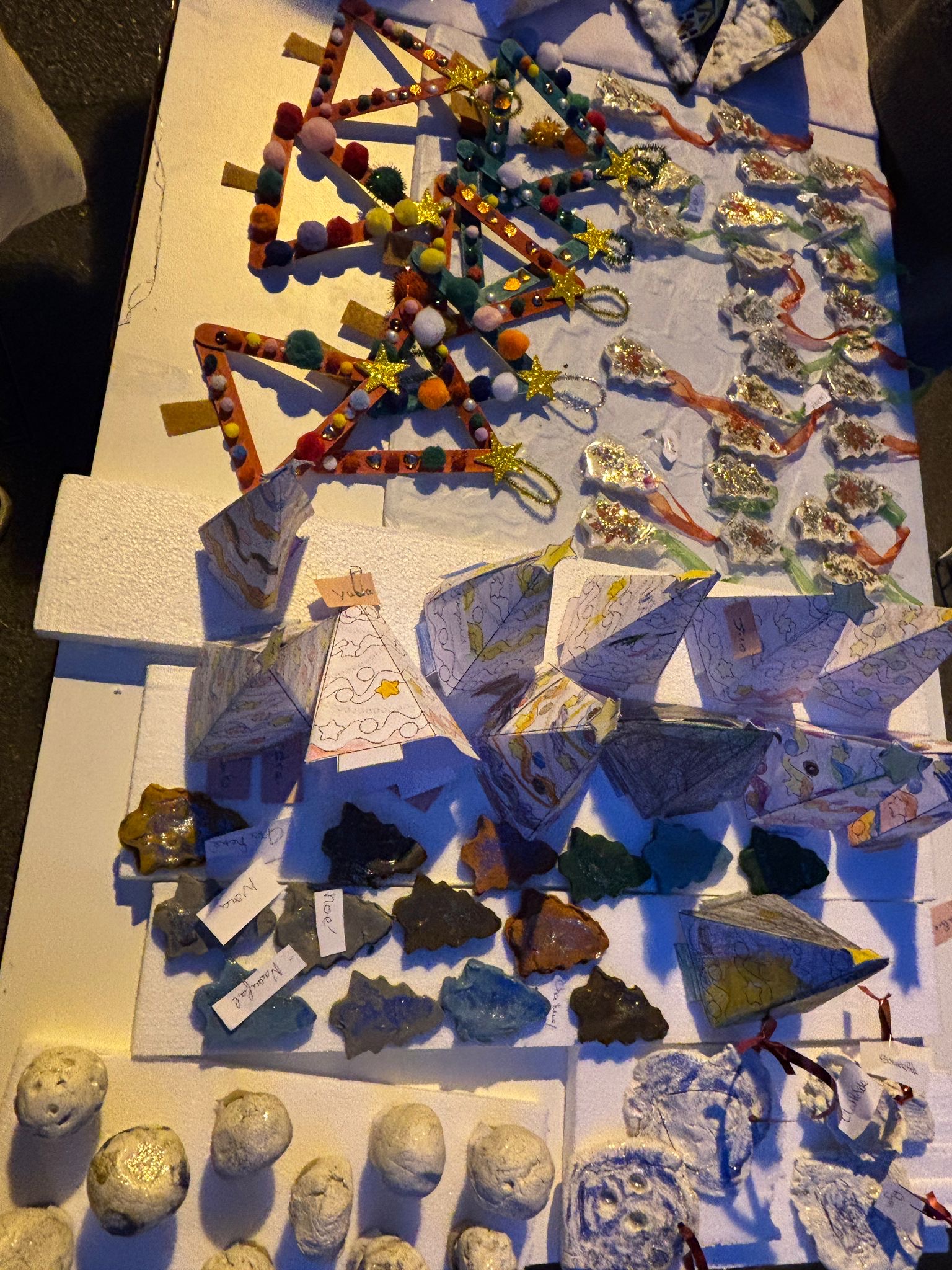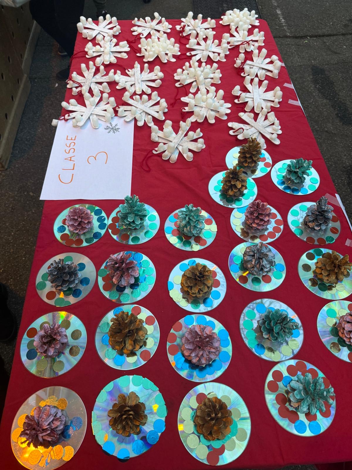 Toutes les classes et le périscolaire ont pu exposer et vendre leurs décors et fabrications. Bravo à tous nos élèves pour leurs oeuvres. Les parents élus tenaient le stand des gateaux et des boissons chaudes.