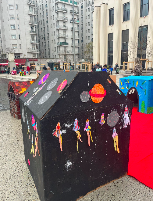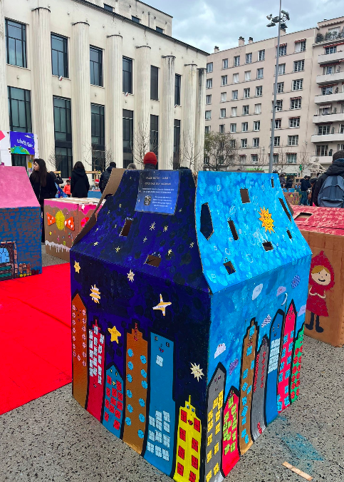 Certaines classes de l’école ont décoré une cabane sur le temps scolaire ou périscolaire. Nos cabanes avec celles d’autres écoles de Villeurbanne ont été exposées au Village des Cabanes ce jour-là. D’autres animations sur la Place et à la piscine ont eu lieu.